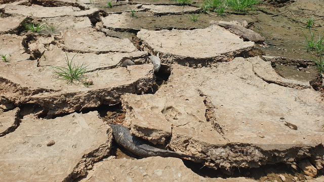 Lòng hồ thủy điện Trị An cạn trơ đáy do thiếu hụt mưa trong thời gian dài, cạn kiệt nguồn nước.