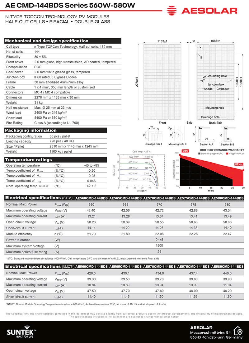 Tấm Pin Năng Lượng Mặt Trời AE-580W
