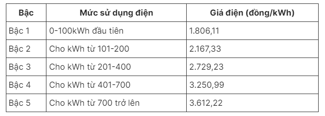 Dùng 700 số điện trở lên, sẽ áp giá cao nhất 3.600 đồng/kWh