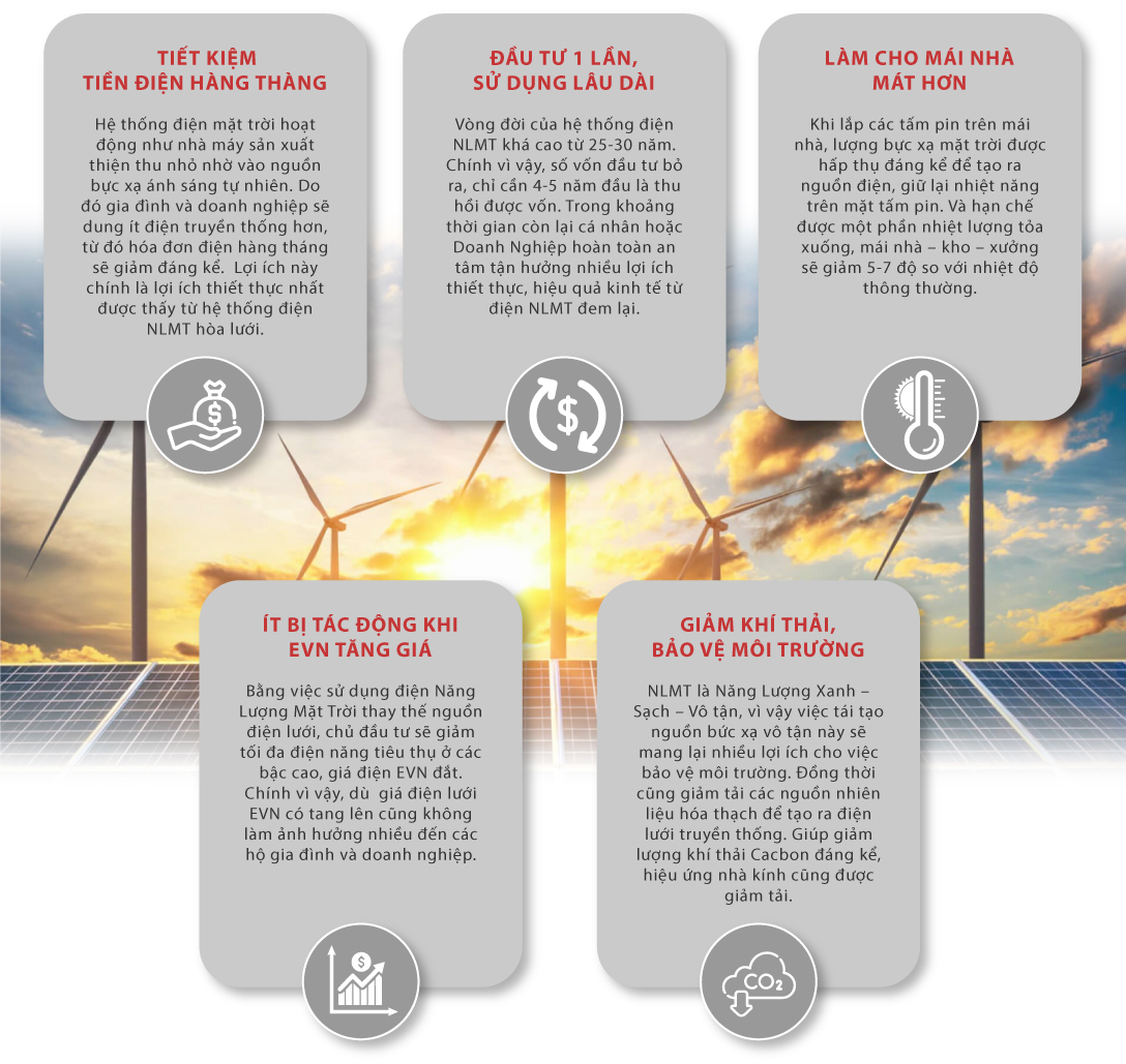 HỆ THỐNG ĐIỆN NĂNG LƯỢNG MẶT TRỜI HOÀ LƯỚI ĐẦU TƯ 1 LẦN - SỬ DỤNG LÂU DÀI LÊN ĐẾN 30 NĂM
