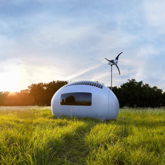 Ngôi nhà với thiết kế như hình quả trứng, sử dụng năng lượng từ tấm pin năng lượng mặt trời gắn phía trên.
