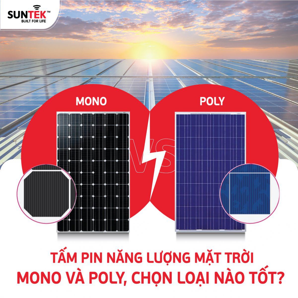 Pin mặt trời poly: Pin mặt trời poly là dạng pin phổ biến nhất trên thị trường. Chúng có giá thành rẻ hơn so với pin mặt trời mono nhưng hiệu suất chuyển đổi có thể thấp hơn một chút. Tuy nhiên, pin mặt trời poly vẫn là một lựa chọn tốt cho người tiêu dùng.
