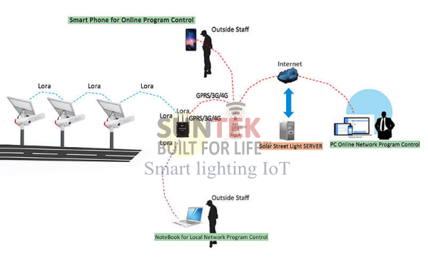 - Smart lighting IoT solar street light - đèn đường năng lượng mặt trời thông minh, giao kết trực tiếp với người dùng thông qua các kết nối trực tuyến.