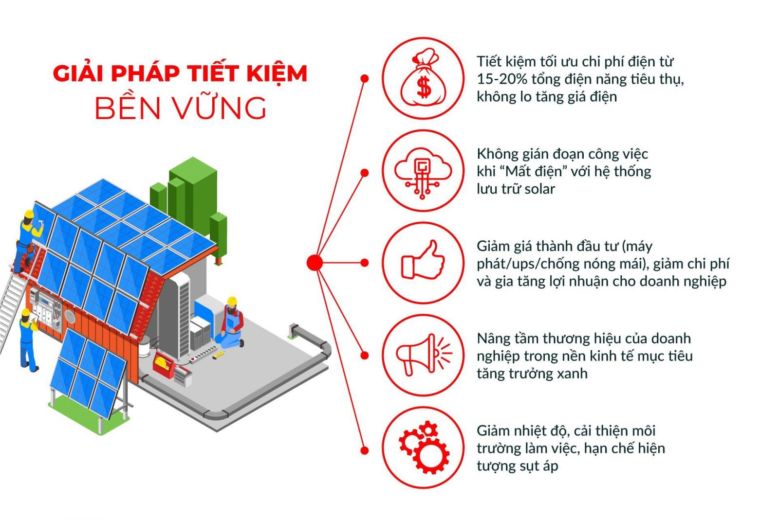 3. Hệ thống điện áp mái NLMT đầu tư 1 khoản – sử dụng dài lâu. Giúp giảm giá thành đầu tư (máy phát/chống nóng mái), giảm chi phí và gia tăng lợi nhuận cho doanh nghiệp.